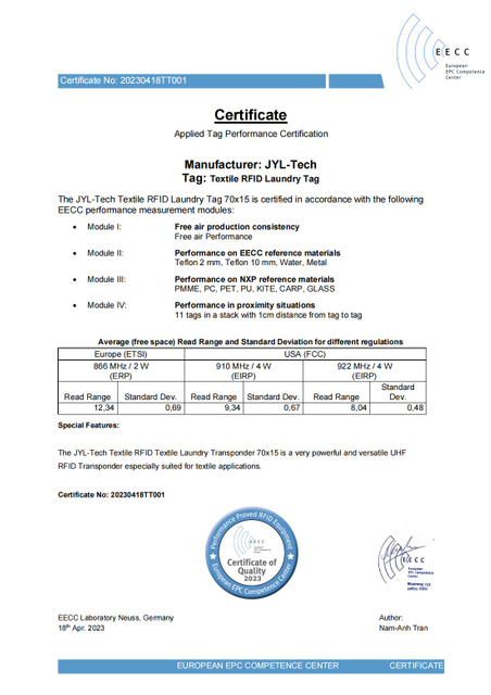 JYL-Tech valora los requisitos del cliente y ofrece productos RFID personalizados.Con capacidades de fabricación flexibles, JYL-Tech adapta los productos según las necesidades específicas del cliente, incluidos diferentes tamaños, materiales, métodos de encapsulación, tipos de chips y aplicaciones.